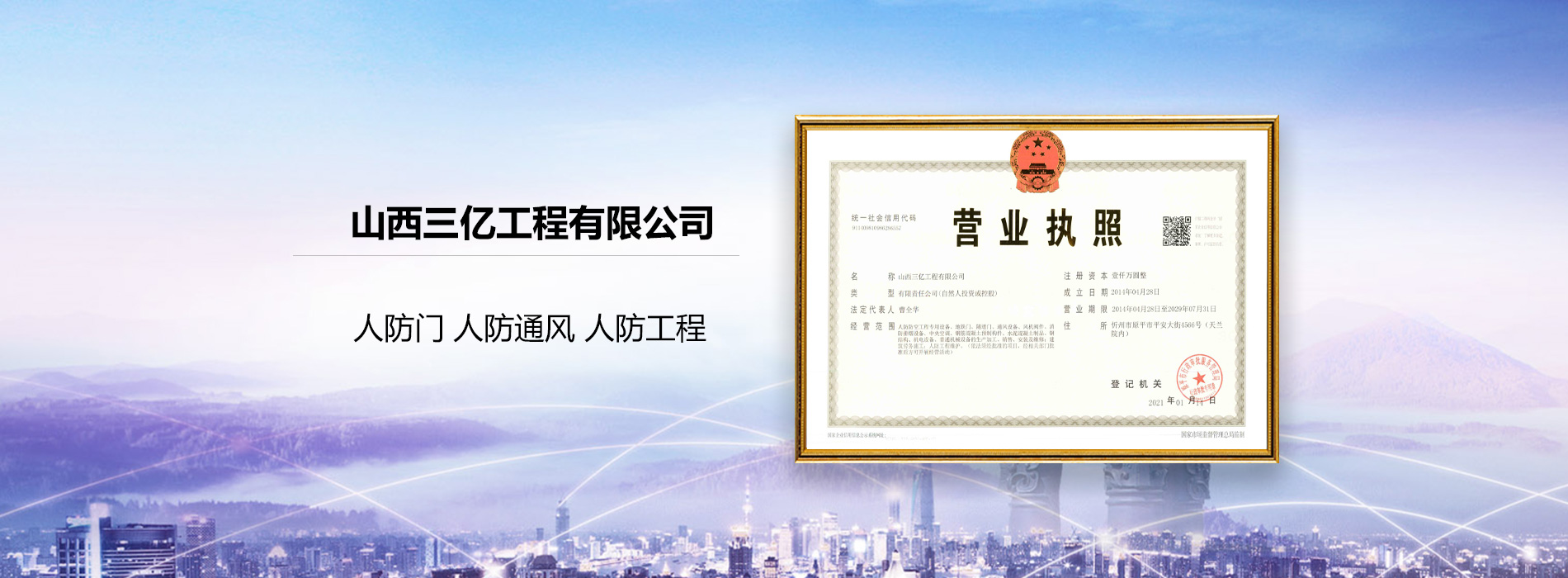 山西三億工程有限公司是經(jīng)人民防空辦公室批準的人防工程的生產(chǎn)和定點安裝企業(yè)。公司及研發(fā).制造.銷售.服務于一體,產(chǎn)品通過 ISO9001 質(zhì)量認證,并列入《人民防空設備產(chǎn)品目錄》。